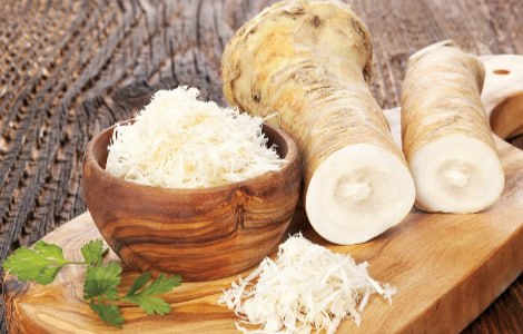 - Reduce la presión arterial. El rábano picante es una valiosa fuente de potasio, un elemento fundamental para regular el flujo de fluidos celulares y la carga en los vasos sanguíneos.